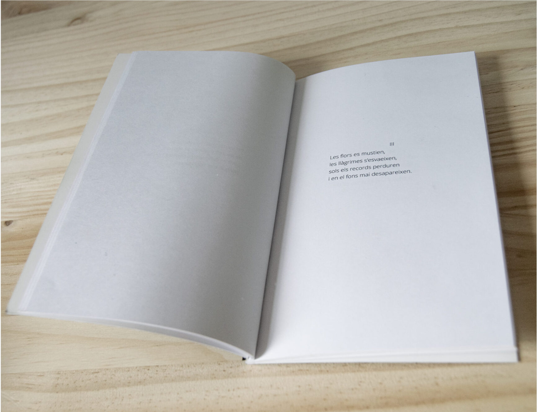 El diseño interior ha sido un diseño tipificado, cada poema con su numeración romana, en una página en blanco sin ornamentación, solo para centrarse en la palabra, para transmitir los sentimientos que contienen las palabras escritas.