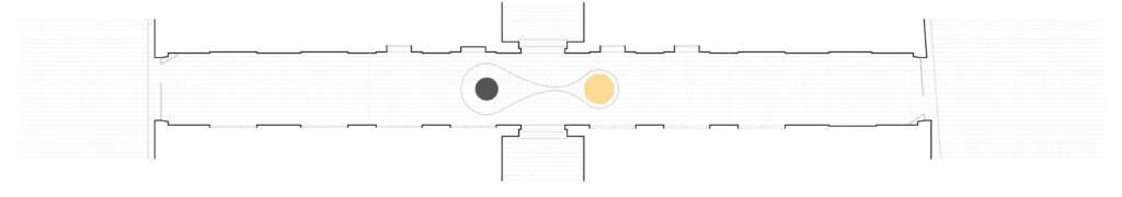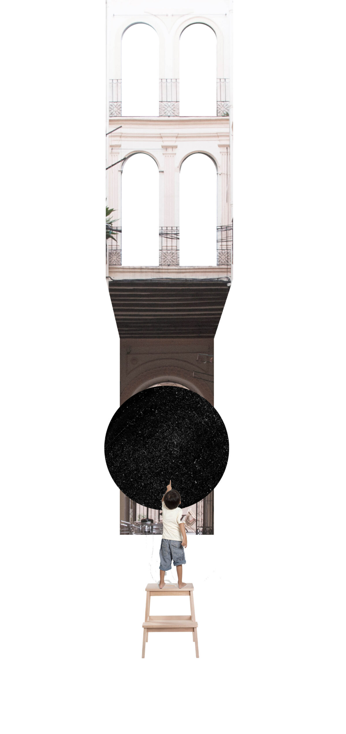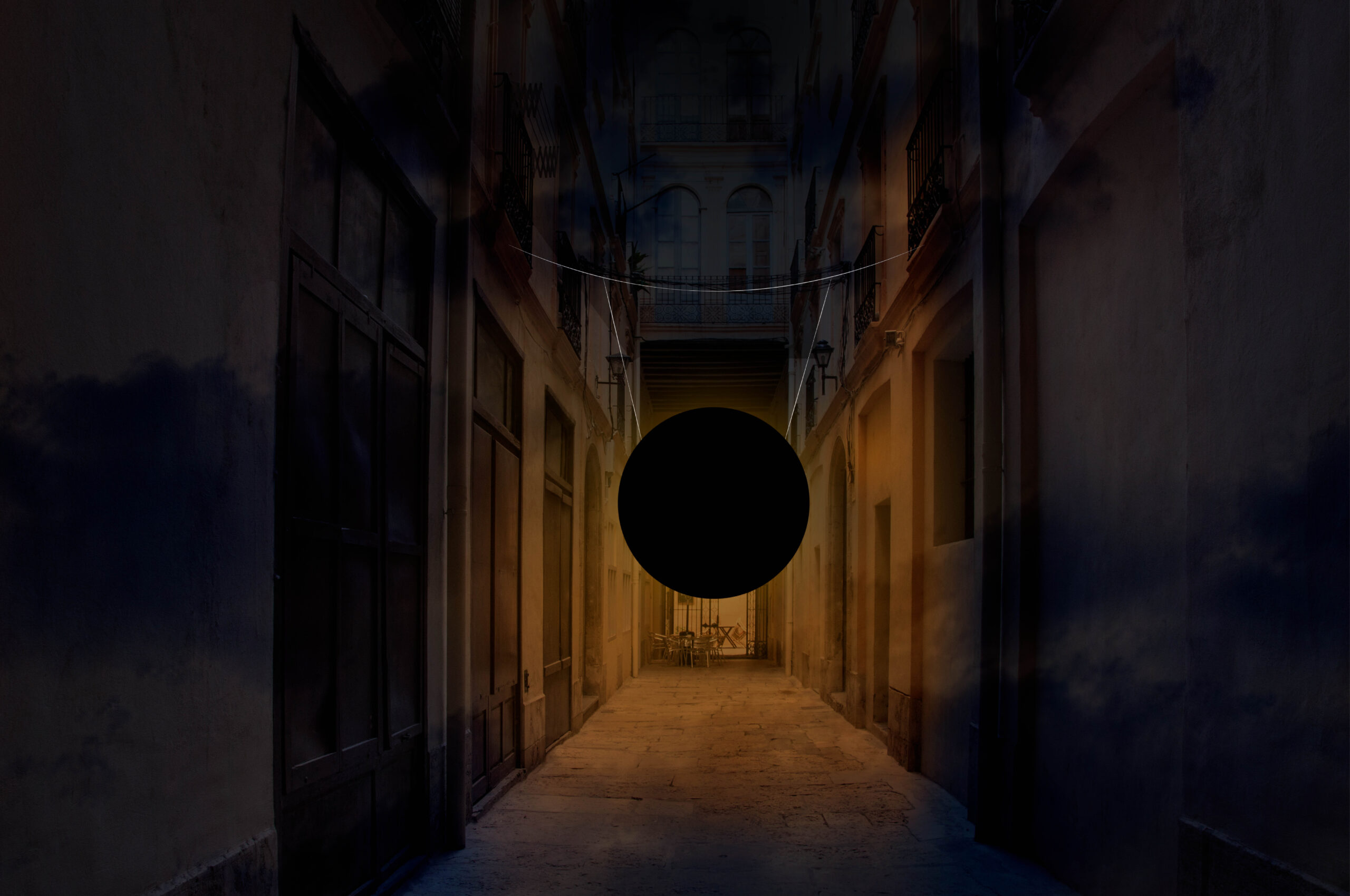 Ubicadas en el centro pasaje Franquet, se opta por un espacio estrecho y accesible por ambos lados pero de obligatoriedad de paso alrededor de la actuación haciendo que el espectador interactúe con la obra. Por un lado, el vacío, un vacío en el espacio que cautiva el cuerpo y la mente sintiéndose atraído por éste como si tuviera gravedad, esa fragilidad e inseguridad impidiendo ver la realidad con claridad. Esta oscuridad se superpone a la luz, donde jugando con la perspectiva se crea un efecto «eclíptico».